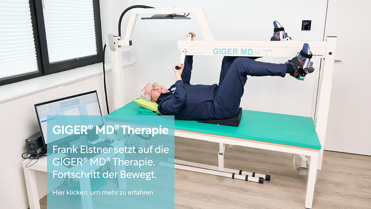 Die GIGER MD® Therapiemethode eröffnet neue Möglichkeiten, Schmerzen zu reduzieren und verloren geglaubte Funktionen wiederzugewinnen. Über eine Millionen mit Computer aufgezeichnete Therapiesitzungen und zahlreiche wissenschaftliche Studien belegen ihre Wirksamkeit. Ein verletztes zentrales Nervensystem führt zu schweren Einschränkungen und Leiden für die Betroffenen. Oft wird dies heute noch als unveränderlich dargestellt. Die Erfolge der GIGER MD® beweisen, dass es Möglichkeiten gibt, ein verletztes zentrales Nervensystem zu restaurieren und so ein Stück weit verloren geglaubte Funktionen und damit die eigene Selbstständigkeit wiederzuerlangen. Mithilfe regelmässiger Therapieeinheiten gelingt es, das Gehirn auf neue Bewegungsmuster zu trainieren. Der Schlüssel dazu sind harmonische Bewegungen des ganzen Körpers mithilfe hochentwickelter Therapieinstrumente. Mit der GIGER MD® Therapie profitieren Patienten von